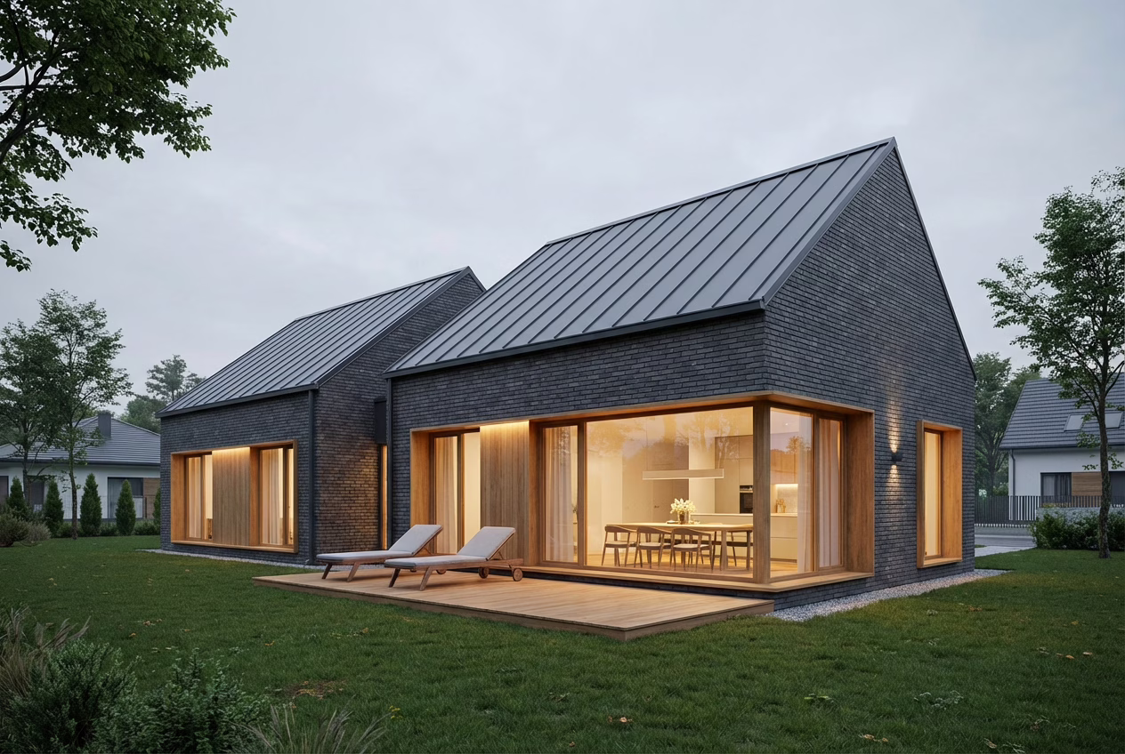- Cenisz współczesną estetykę, ale nie chcesz domu, który “kłóci się” z otoczeniem